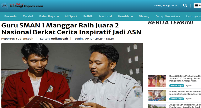 Artikel ini disalin sepenuhnya dari laman https://belitongekspres.bacakoran.co/read/15976/guru-sman-1-manggar-raih-juara-2-nasional-berkat-cerita-inspiratif-jadi-asn/15