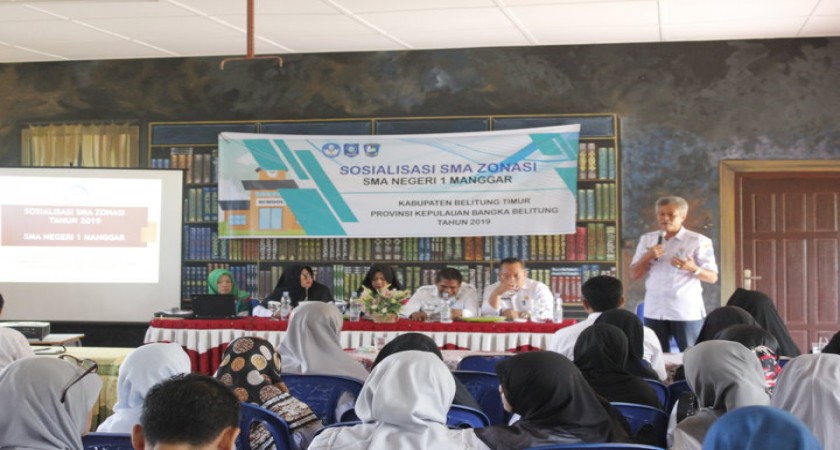 Kegiatan sosialisasi disampaikan oleh Kepala SMAN 1 Manggar Ibu Dian Iryani, S.Pd.. Penunjukan SMAN 1 Manggar sebagai sekolah penerima Program SMA Zonasi berdasarkan Surat Keputusan (SK) dari Direktorat PSMA yang dianggap layak dan mampu malaksanakan 8 Standar Nasional Pendidikan (SNP) secara baik dengan tujuan agar mampu mengimbaskan kepada sekolah di sekitarnya. Kegiatan Sosialisasi SMA Zonasi merupakan langkah awal yang harus dilaksanakan SMAN 1 Manggar sebelum melaksanakan kegiatan selanjutnya selaku sekolah penerima dana Program SMA Zonasi.